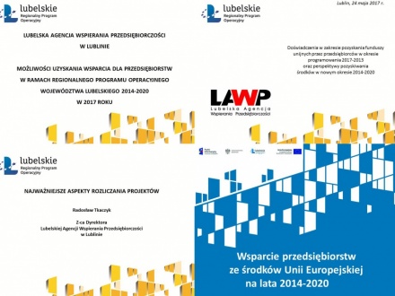 Prezentacje ze spotkania informacyjnego „Fundusze europejskie dla przedsiębiorców”, które odbyło się 24 maja 2017r. w Lubelskim Centrum Konferencyjnym w Lublinie.