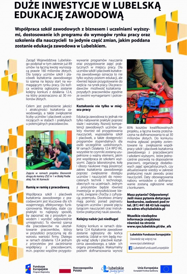 Artykuł sponsorowany dotyczący działania 12.4 Kształcenie zawodowe.